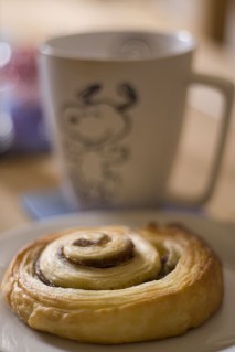 Breakfast yesterday- cinnamon whirl from local farm shop and cup of Earl Grey tea…