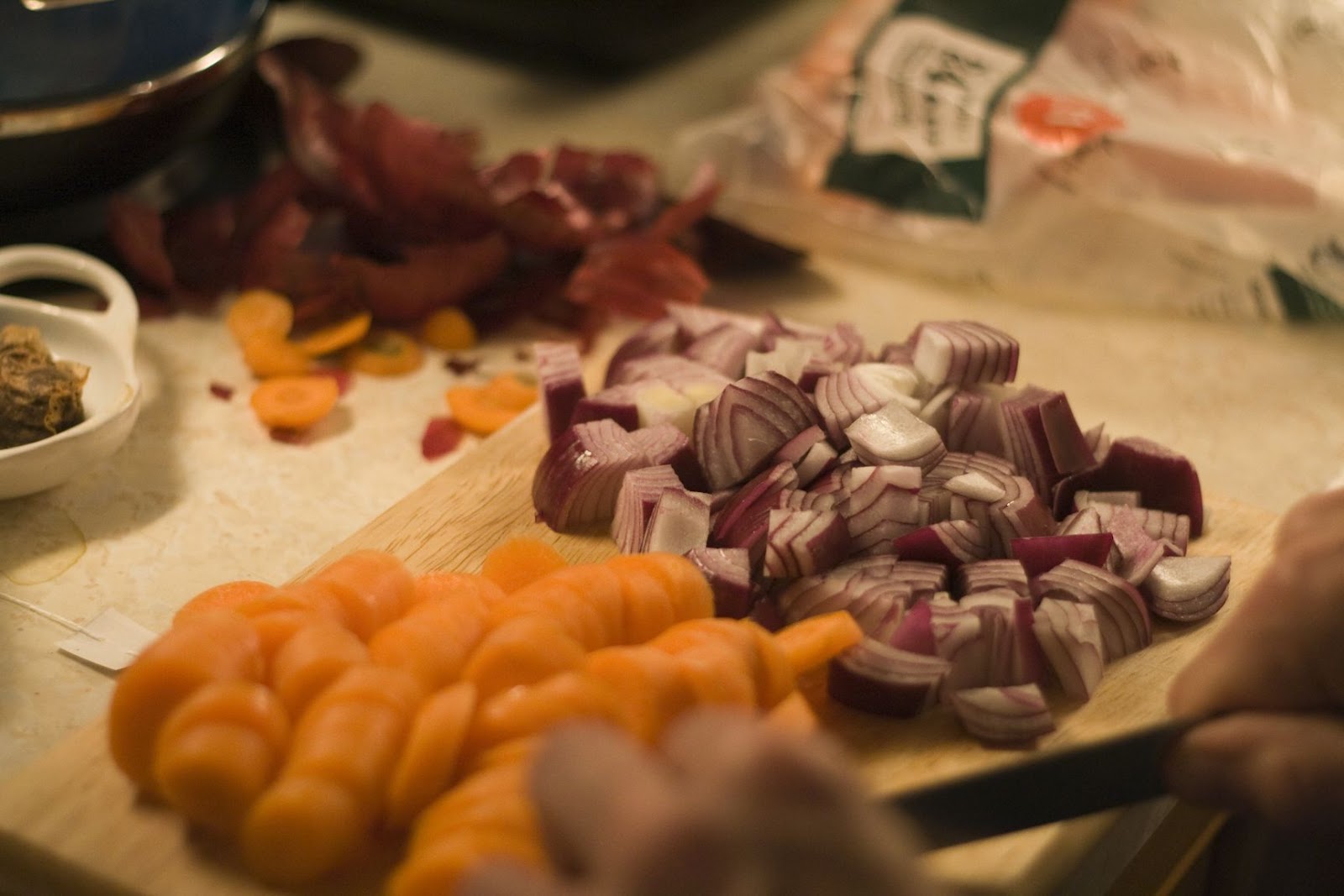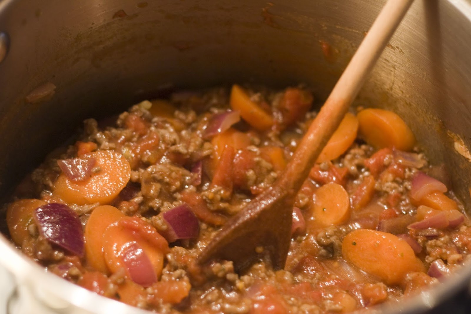 3. Then add in 2 cartons of chopped tomatoes and your chopped carrots…