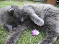 We wanted to get two so that they had company for each other, and had been recommended that two of the same gender was a good idea. So, we first picked up Mercury as he was the only grey kitten- and he was a boy…