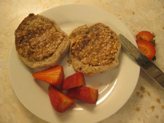 I’ve been having a wholewheat English muffin with crunchy peanut putter and strawberries for breakfast…