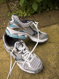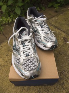 These are my old shoes- a New Balance Trail running shoe, I’m not sure of the model, I picked them up cheap in Sports Direct and they’ve lasted well! But they’re quite heavy, very solid and offer no cushioning which is not good when running on roads, as it puts a lot of stress on your knees. I’ll keep them for “rainy days” (literally) when I want to run off-road…