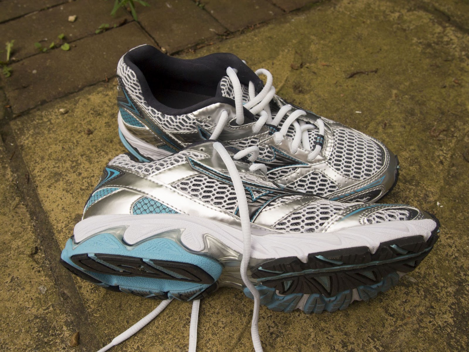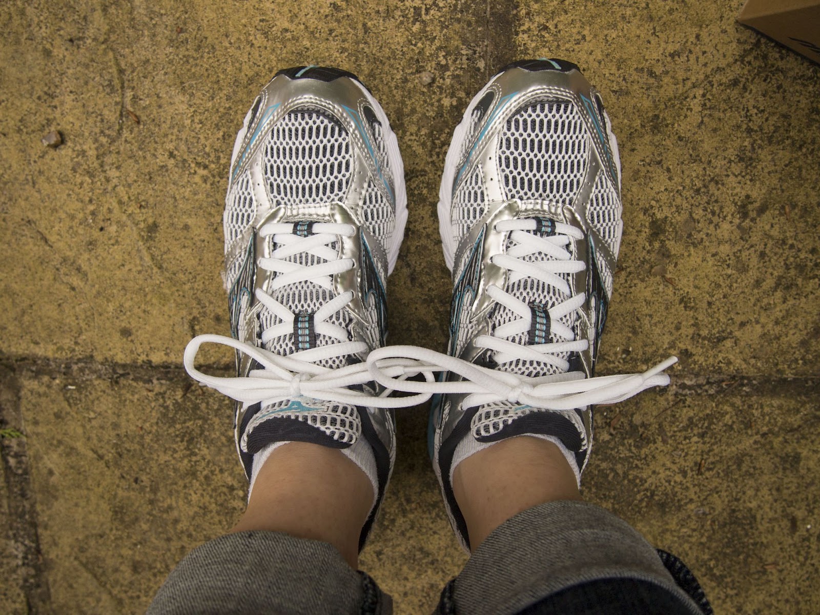 These are my old shoes- a New Balance Trail running shoe, I’m not sure of the model, I picked them up cheap in Sports Direct and they’ve lasted well! But they’re quite heavy, very solid and offer no cushioning which is not good when running on roads, as it puts a lot of stress on your knees. I’ll keep them for “rainy days” (literally) when I want to run off-road…