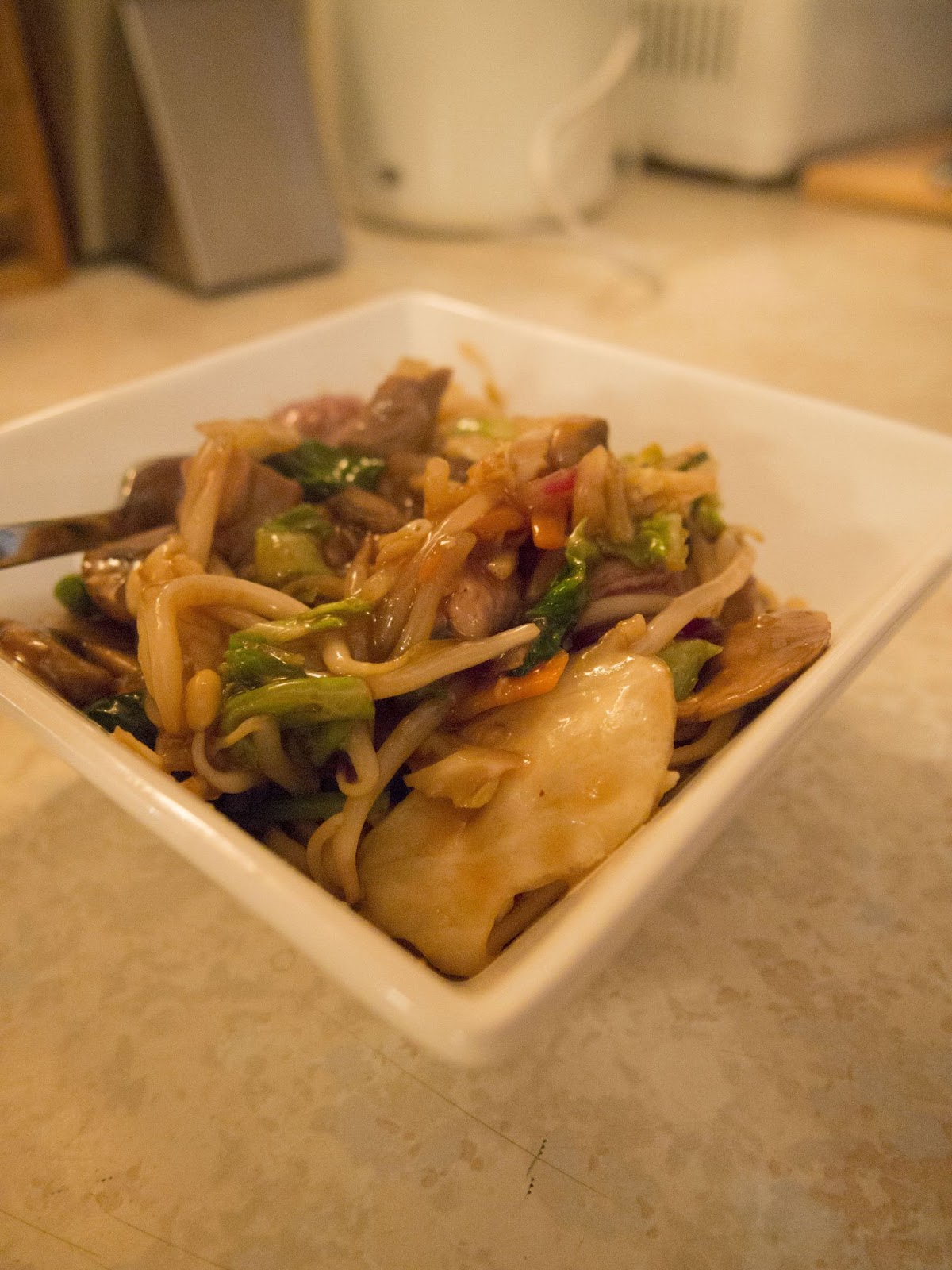 Ok, well this was going to be duck and broccoli but my broccoli had sadly gone yellow and wilted π¦ So I improvised with mushrooms, bean sprouts and spinach. I think it would have actually been better with broccoli to give it a bit of crunch so will definitely be trying it at some point!