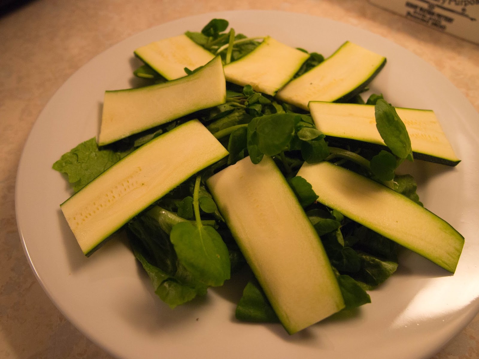 3. Arrange the courgette slices on your bed of leaves.