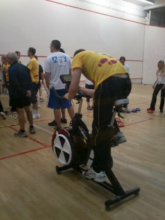 This was hard! Each member of the team had to cycle 500m on watt bikes as fast as possible.