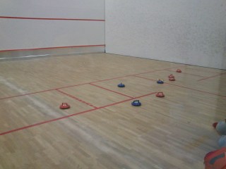 After a short break was curling- held indoors in the squash courts using curling stones with wheels, like little roller skates π