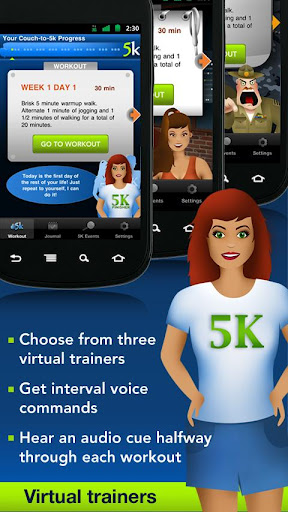 You choose a “trainer” who speaks to you through your headphones telling you when to run/walk, with motivational phrases thrown in too. You can choose the “nice” one, or the drill sergeant depending on how much you need to be pushed!