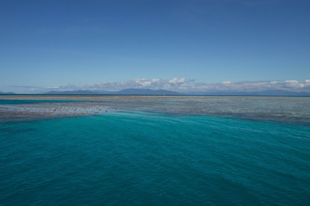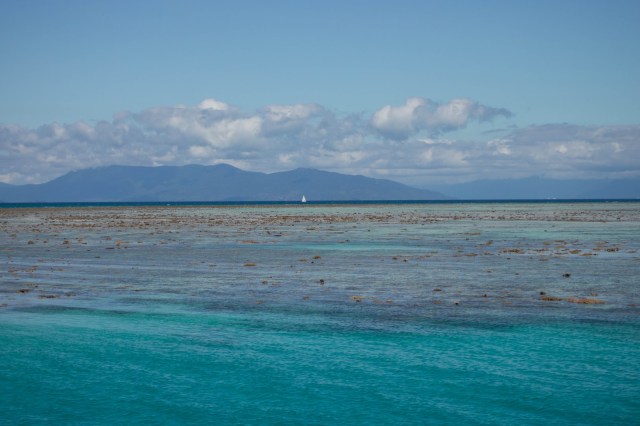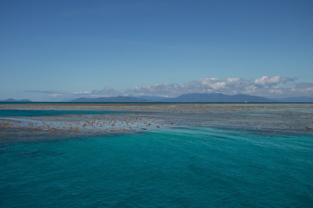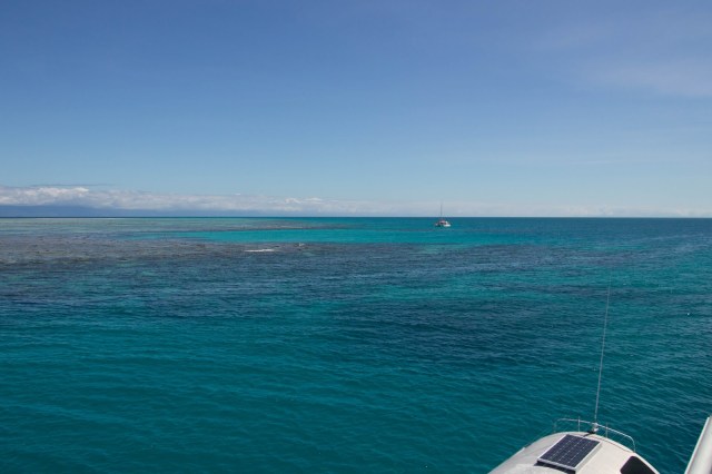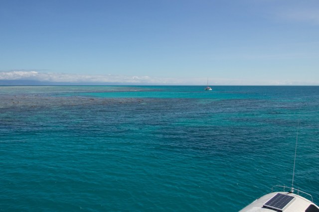 We sat on the upper deck for the trip out to the reef, which was a little cloudy and bumpy to start with but the sun soon came out.