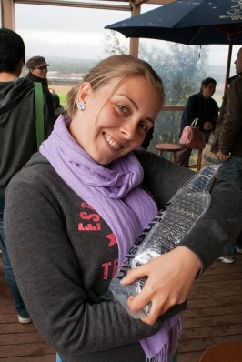 After that it was time for lunch and a cheese tasting at Tempus Two, a much larger commerical winery. We tried two fetas with pesto and sundried tomato, a fromage frais and a marscapone soft cheese- they were ok, but nothing amazing. We are rather spoilt for choice having such good cheese at home, and even trying some of the blue cheeses on the deli counter couldn’t match up. We ordered a pizza from their cafe to share for lunch, and then went to the cellar door to try some of the Tempus Two wines. The atmosphere was a lot more impersonal- you could just ask to try whatever you fancied from their list, they’d pour it and walk away. We tried a semillon, a wilde Chardonnay (no yeast), and dessert late harvest semillon- all nice, but I could still remember that Ernest Hill Semillon!