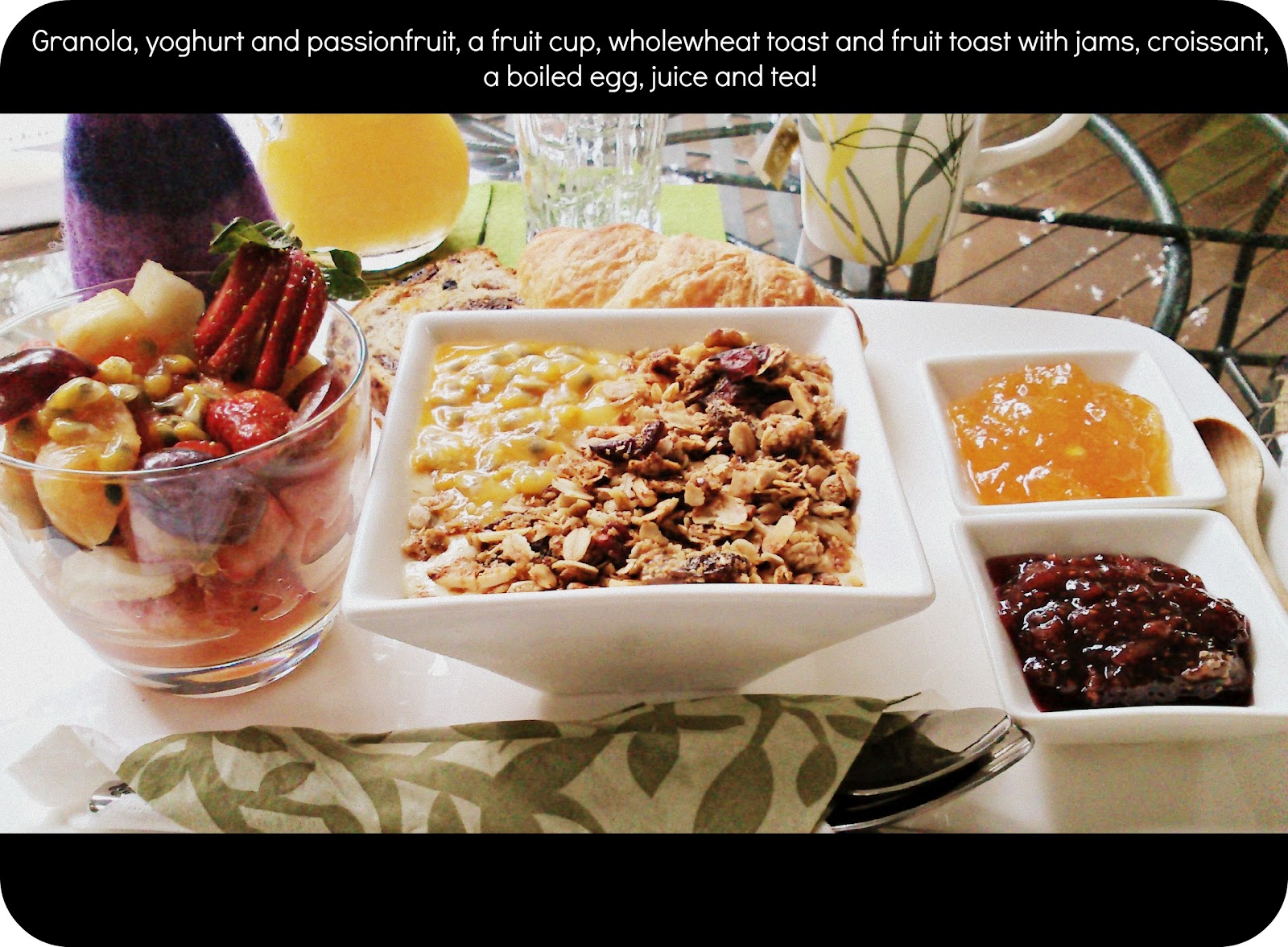Other variations included bread, ham, cheese and boiled eggs (continental style breakfast), smoked salmon, avocado and cream cheese on toast, and a cooked breakfast on the last day of scrambled eggs, bacon, mushrooms, tomato and potato rosti. And always lots of fruit! Smoothies and juice were provided too, so we were definitely well fed, and healthily for the most part. I much prefer having something fresh to start the day rather than a greasy fry-up.