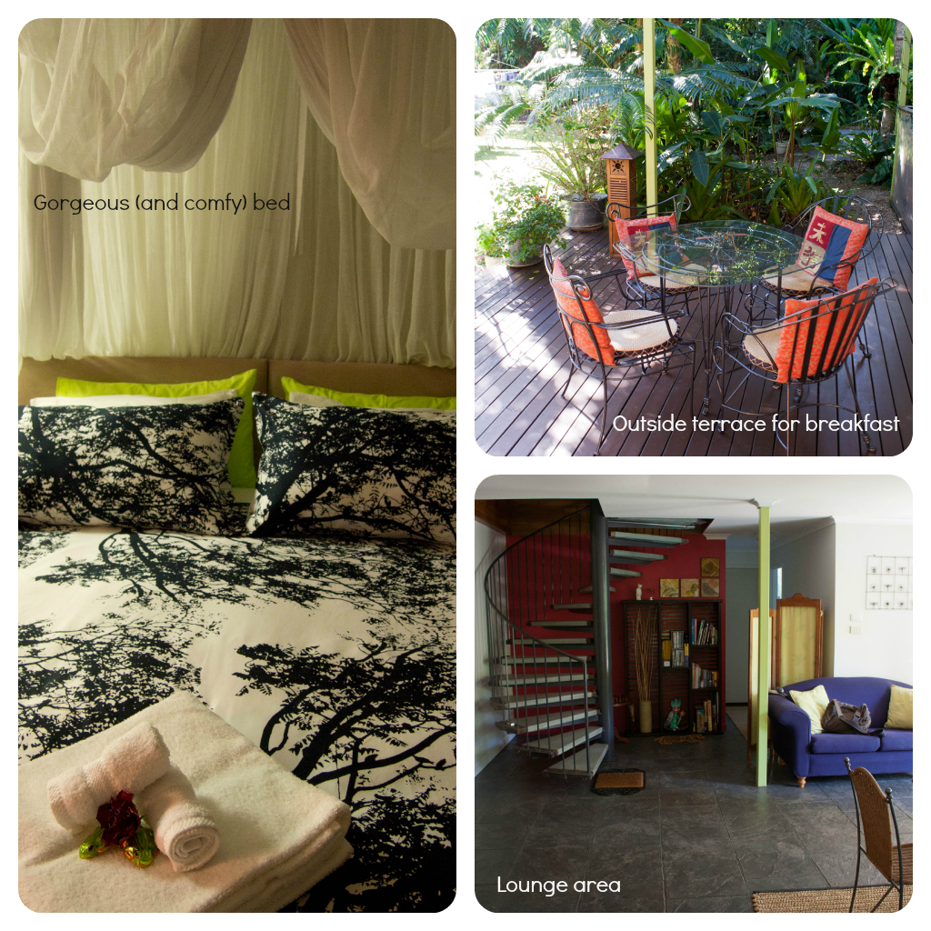 This amazing bed and breakfast is located just outside Cairns in the district of Edgehill. It is adjacent to the Botanic Gardens which is a lovely place to go for a walk around- so many cool plants, and a boardwalk through the rainforest.