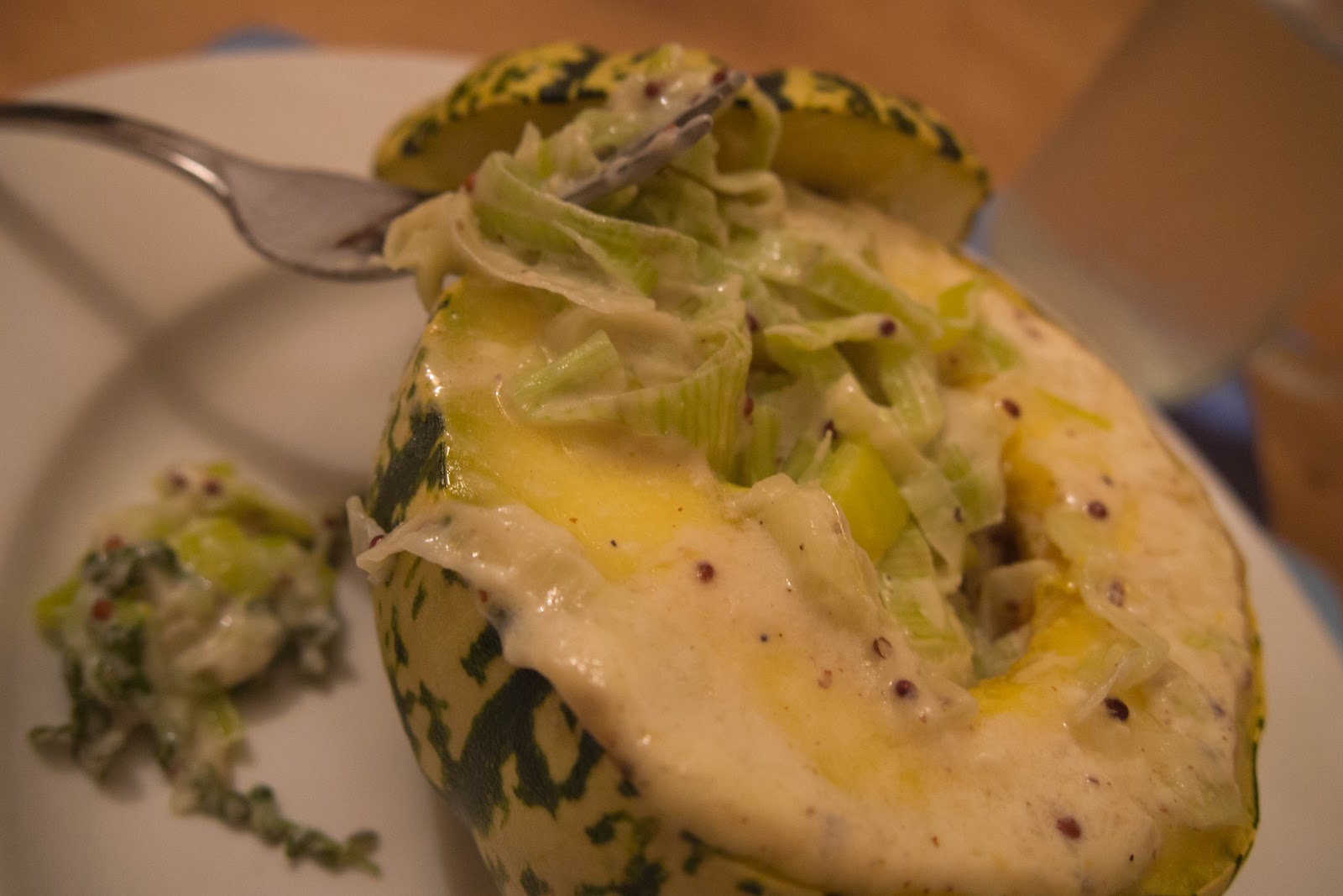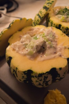 5. Fill the squash with the leek mixture (ours were a little stuffed!)