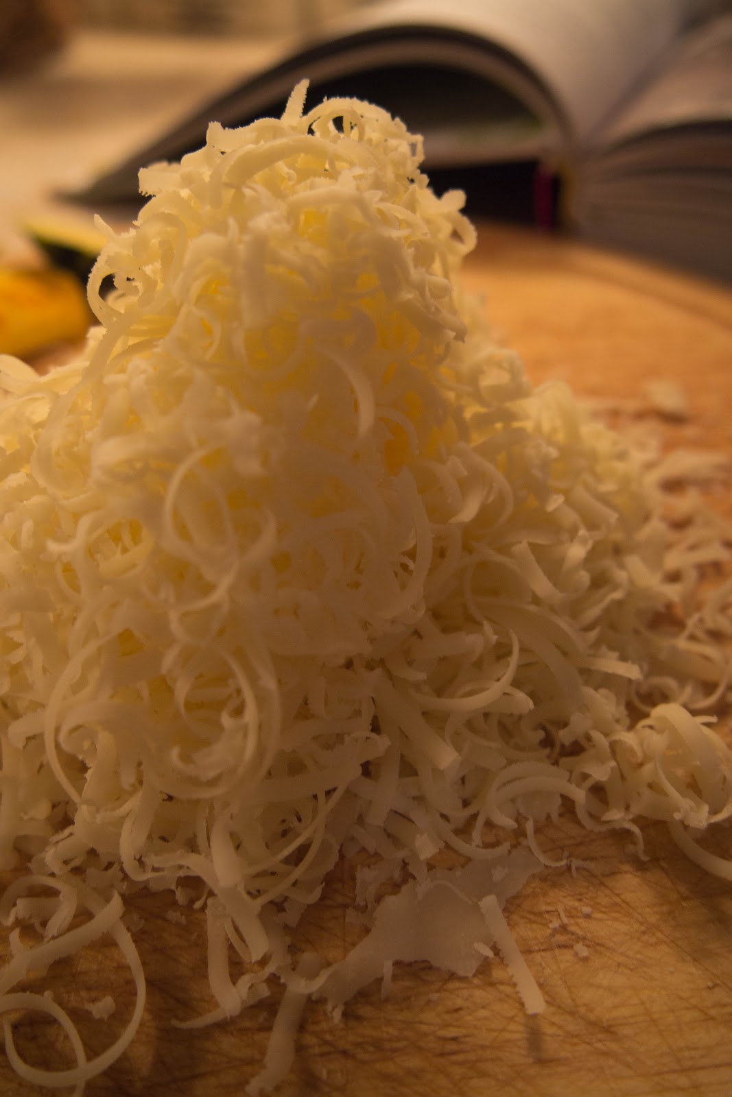 3. Grate your Gruyère cheese (you could use other cheese instead- I think parmesan would be nice and might add a stronger flavour).