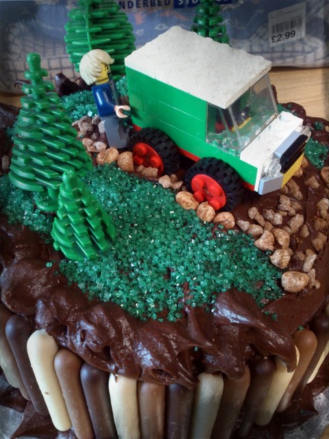 However, my muffins paled into comparison against this amazing chocolate cake created by one of the girls in the office- my boss really loves his Land Rover so the little Lego figure on top was so cool!