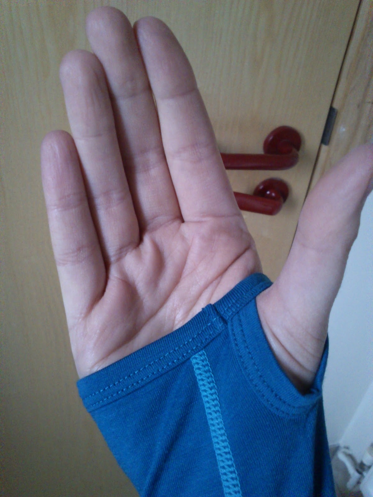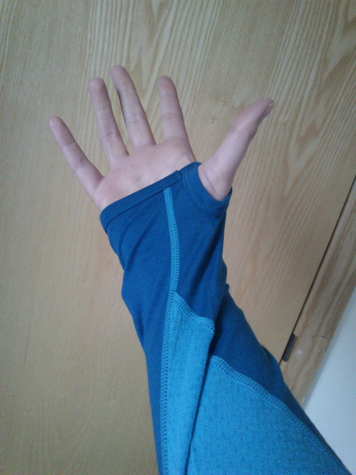 It’s a really nice blue colour and is thin and lightweight yet keeps you warm due to the material (merino wool from New Zealand, which is a great natural insulator).