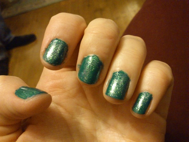 Christmas green sparkly nails painted Christmas Eve with my sister π
