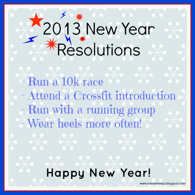 My resolutions focus mainly on exercise and trying out new things – with my current gym membership in Norfolk cancelled it gives me a chance to reassess and consider other options. I still want to keep running as I really enjoy it, and Mark bought me a Garmin Forerunner 10 for Christmas which I’m super excited to try out! And I’d love to enter some more races in 2013, I’ve got my eye on a few so we’ll see how things go!