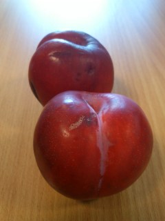 Two red plums from our office fruit box and a cup of tea. I drink lots of water throughout the day at work too.