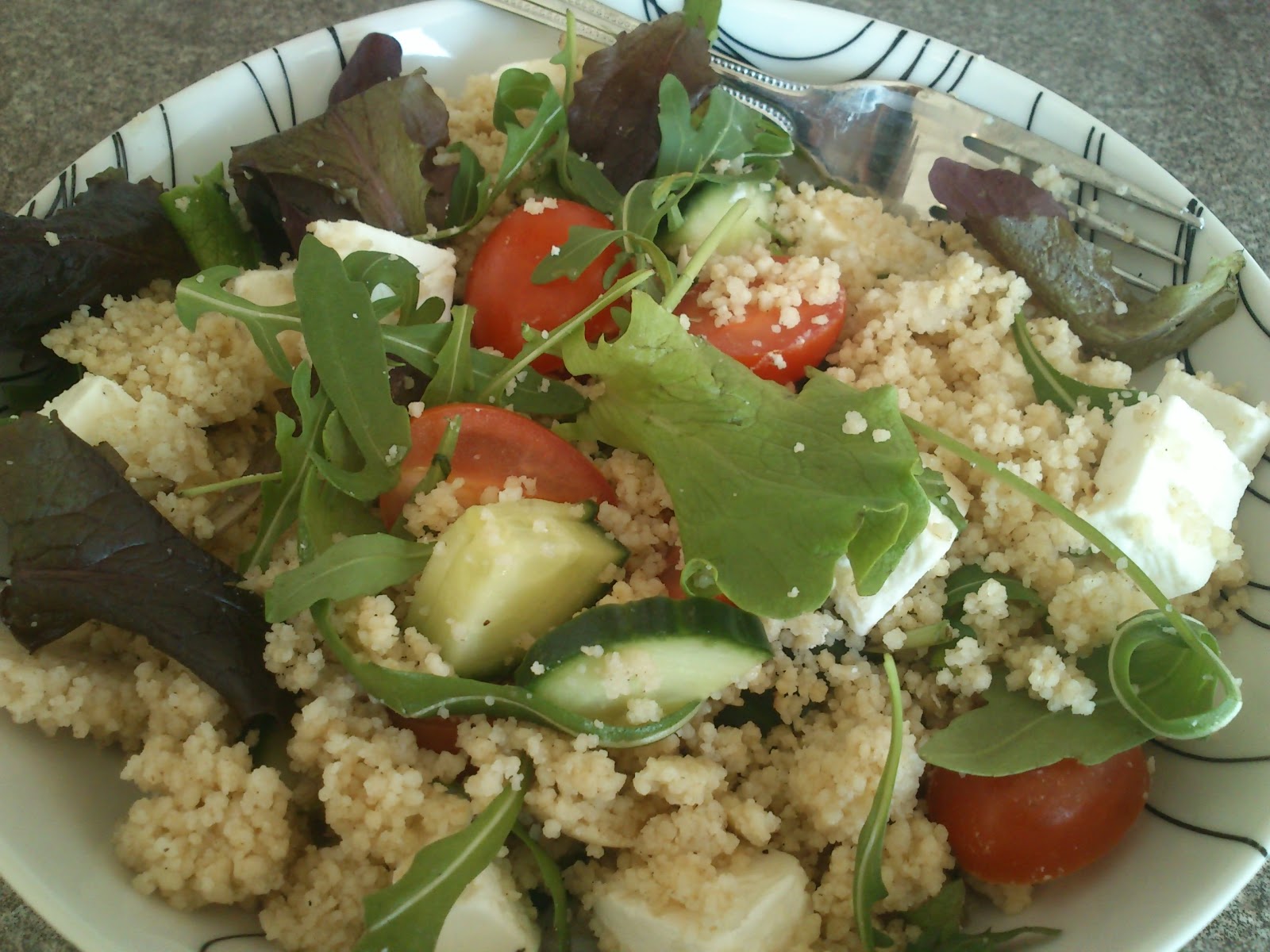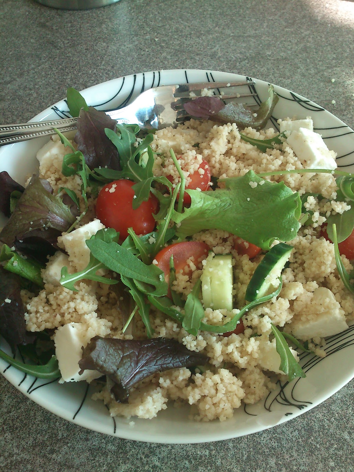 We had leftover couscous from dinner so I made it into a salad to take to work- I added chopped cucumber, spring onions, cherry tomatoes, salad leaves and feta.