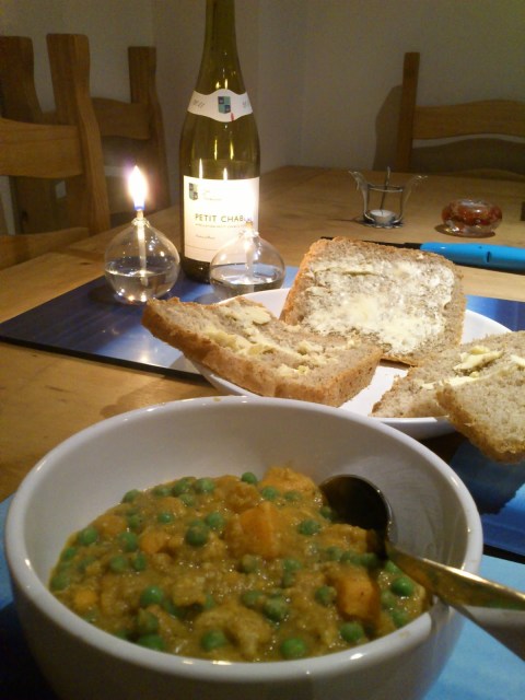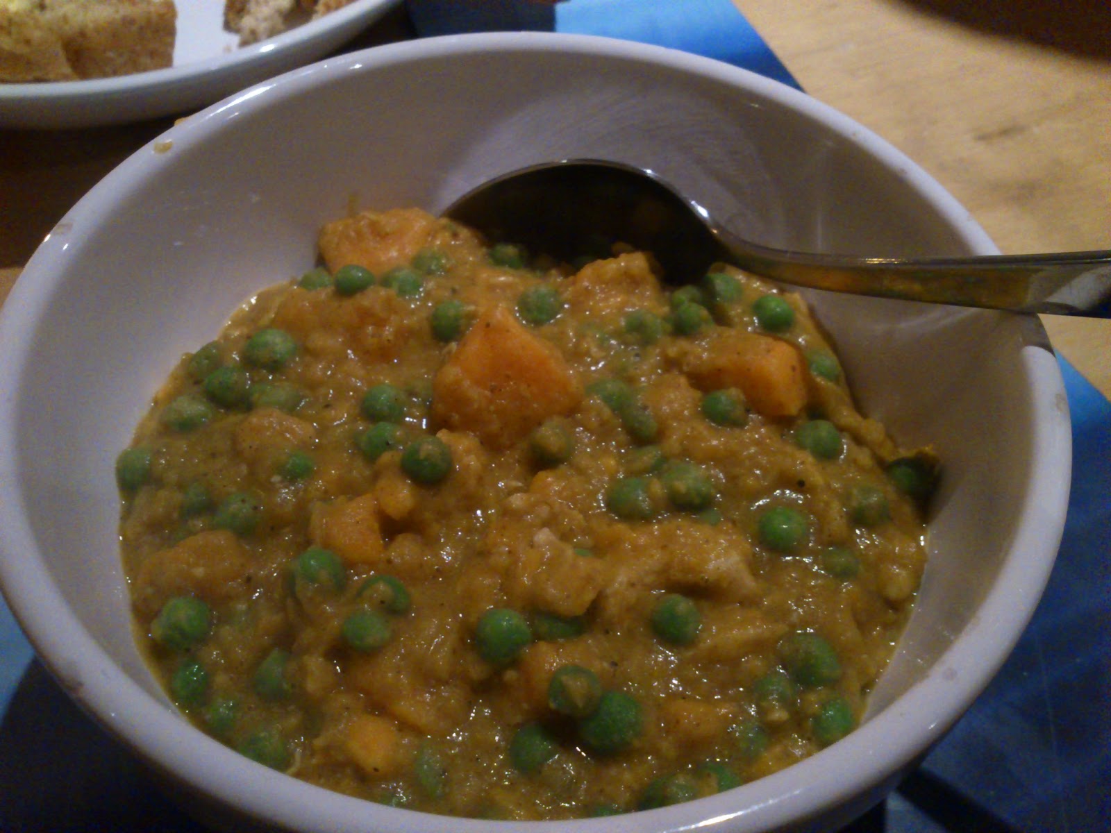 DinnerChicken and sweet potato curry with peas (sorry it doesn’t look very pretty!).