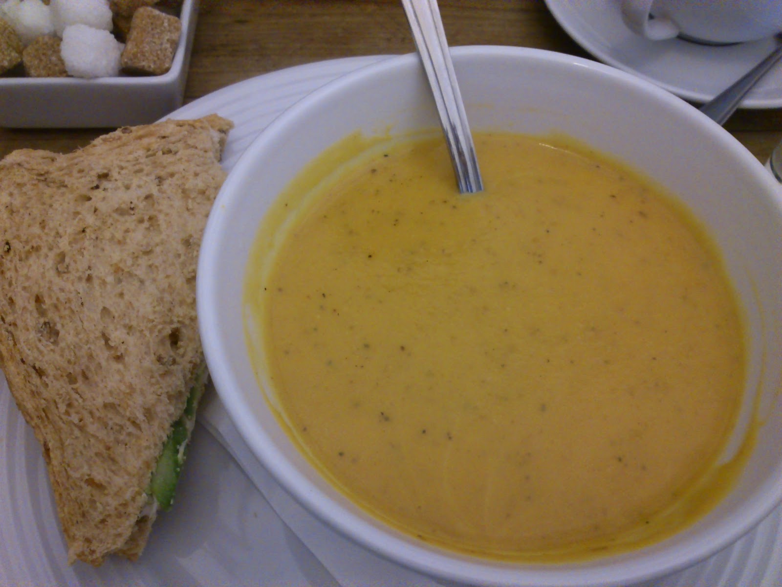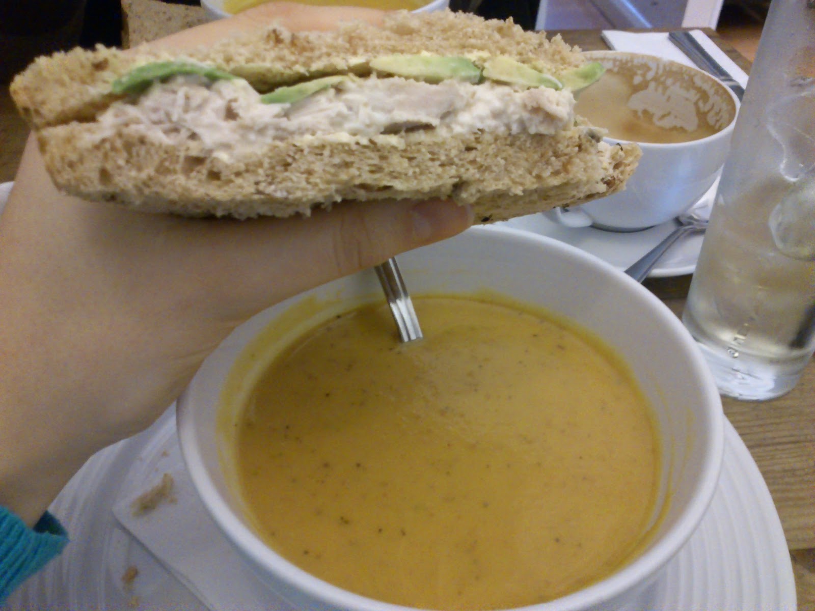 Lunch I met Mark for lunch in town, and we headed to The Pickled Pantry for soup and a sandwich, one of their lunchtime deals. The soup today was roasted butternut squash, and I opted for the chicken and avocado sandwich on multigrain bread- yum!