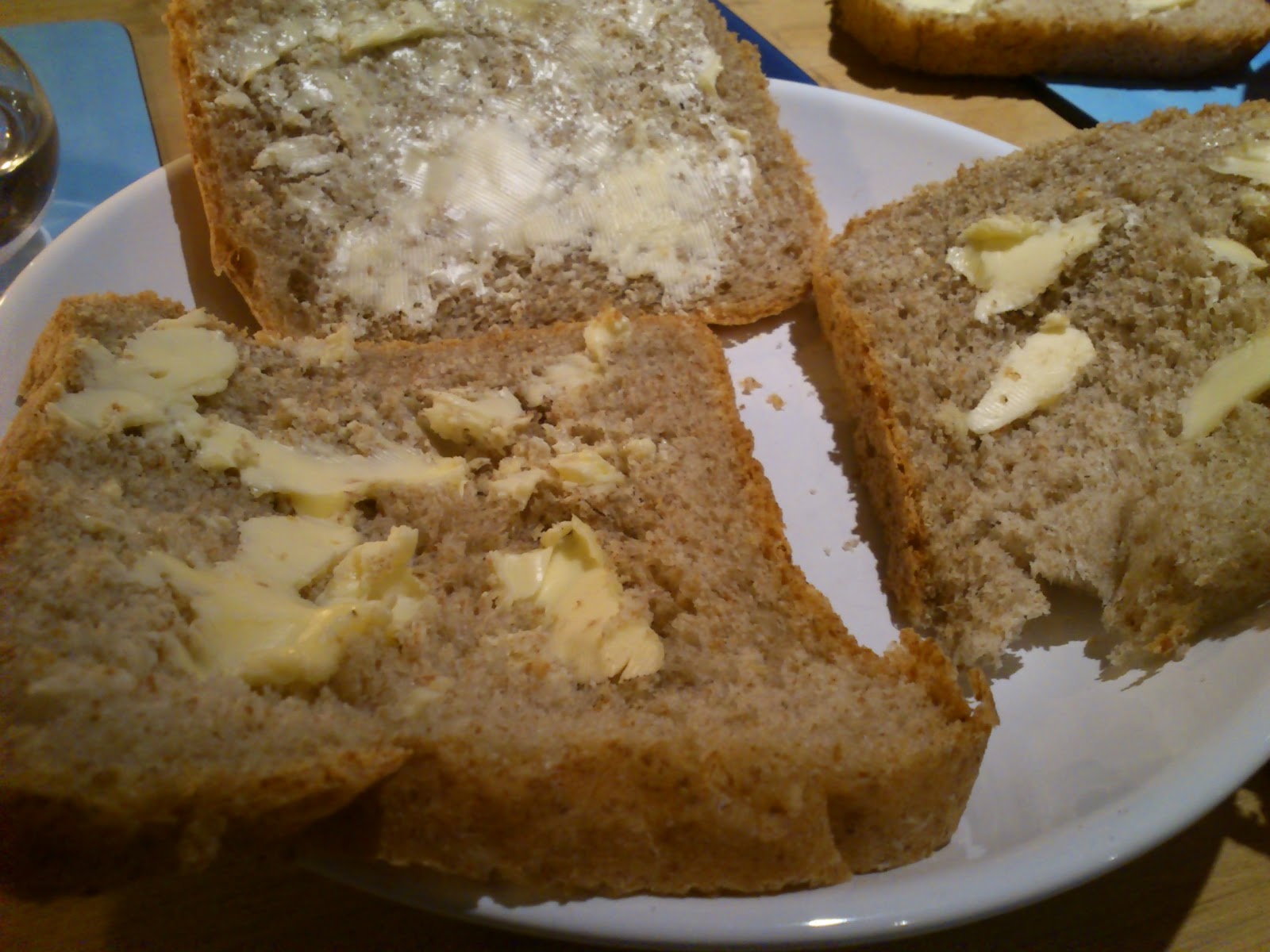 This was supposed to be with rice, but we discovered a little too late that we’d run out! So I just had 1 slice of homemade bread instead π
