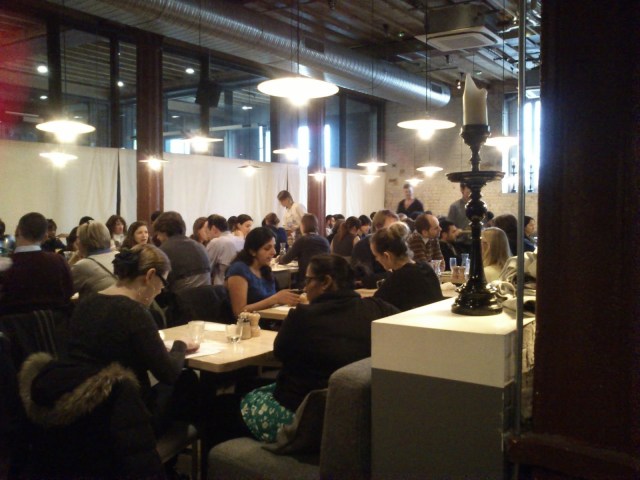 The restaurant itself is spacious with lots of tables, high ceilings and a minimalist vibe which is so popular at the moment (bare pipes, wooden tables)! Unfortunately weekend brunch is the worst time to come to Caravan it transpires, as it was heaving with a pretty long queue. I arrived before my friend at about 12:15pm so was able to get us on the list for a table, and was told it would be at least a half hour wait. Brunch is served from 10am-4pm and tables can’t be booked in advance so it’s just a case of turn up and queue.