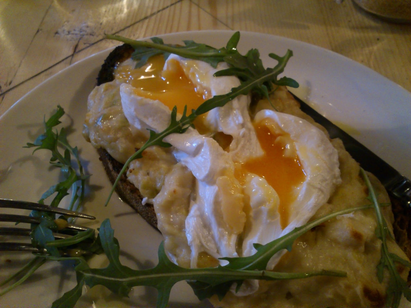 When Jo arrived we were very quickly afterward shown to a table, and presented with menus on clipboards. I was pretty starving by this point so we ordered reasonably quickly, both opting for the “Smoked haddock and leek rarebit, poached eggs, rocket Β£8.50”. The menu has loads of quirky options for brunch and I’d love to come back and try some of the other dishes- everything we saw going past our table looked amazing!