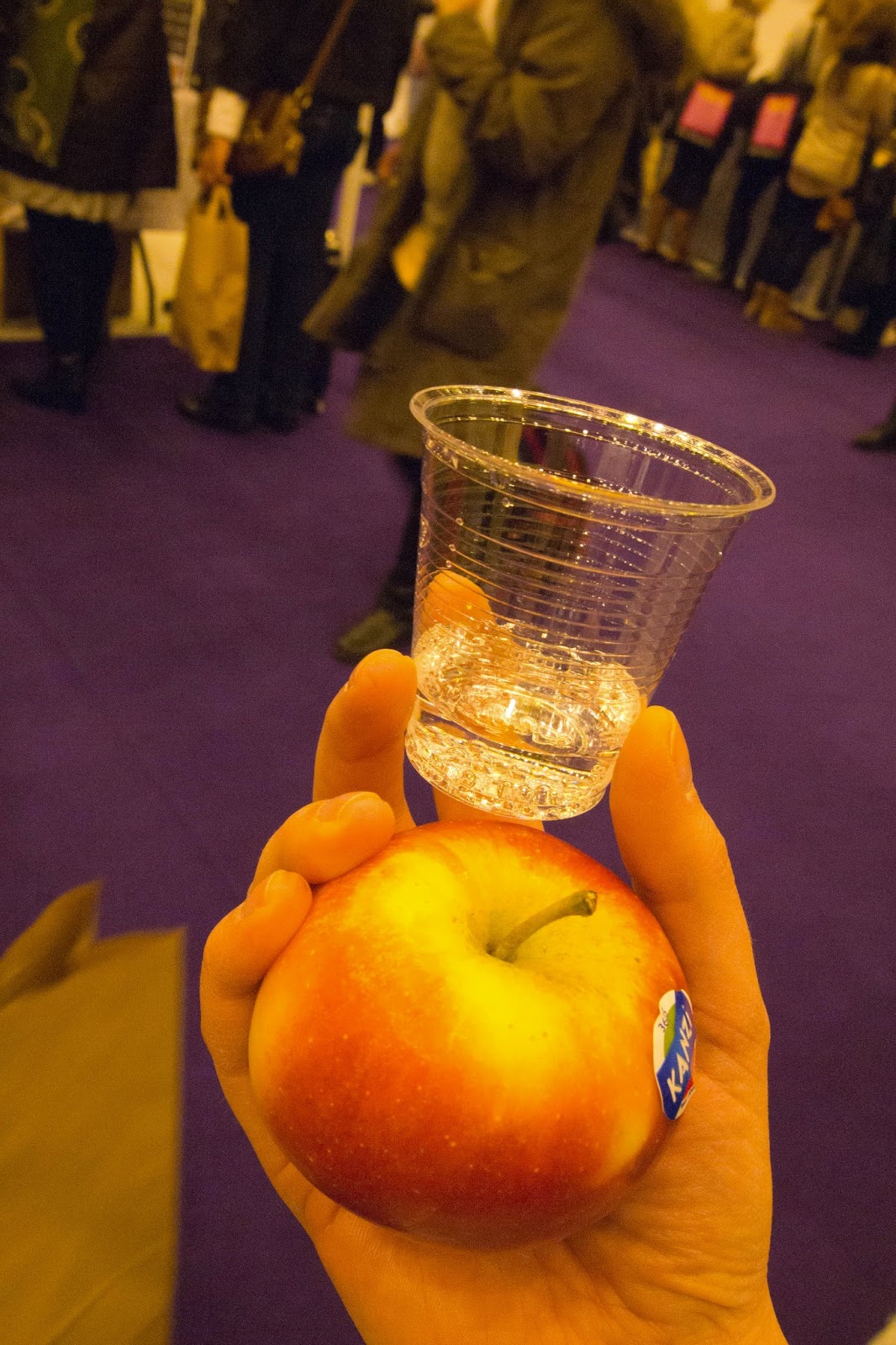 | Q-cumber fizzy water sample and a free apple |