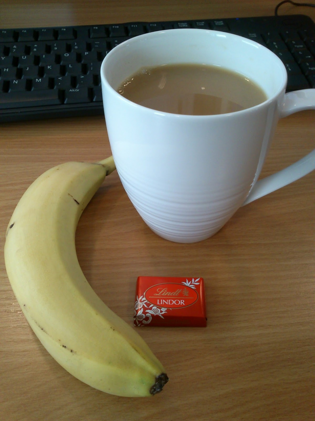 I’m finding that exercising more is definitely increasing my appetite! Mid-morning I grabbed a banana from the work fruit box (and a mini chocolate someone had brought in!) and had a cup of tea.
