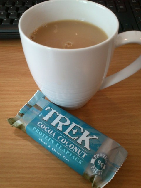 4pm cup of tea, and Trek Cocoa Coconut Protein Flapjack- I love these! π