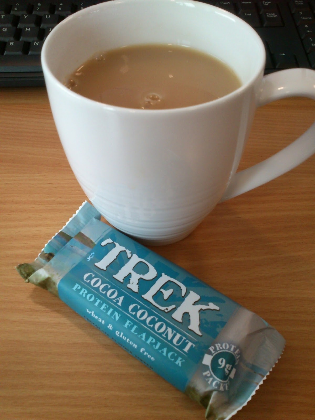4pm cup of tea, and Trek Cocoa Coconut Protein Flapjack- I love these! π