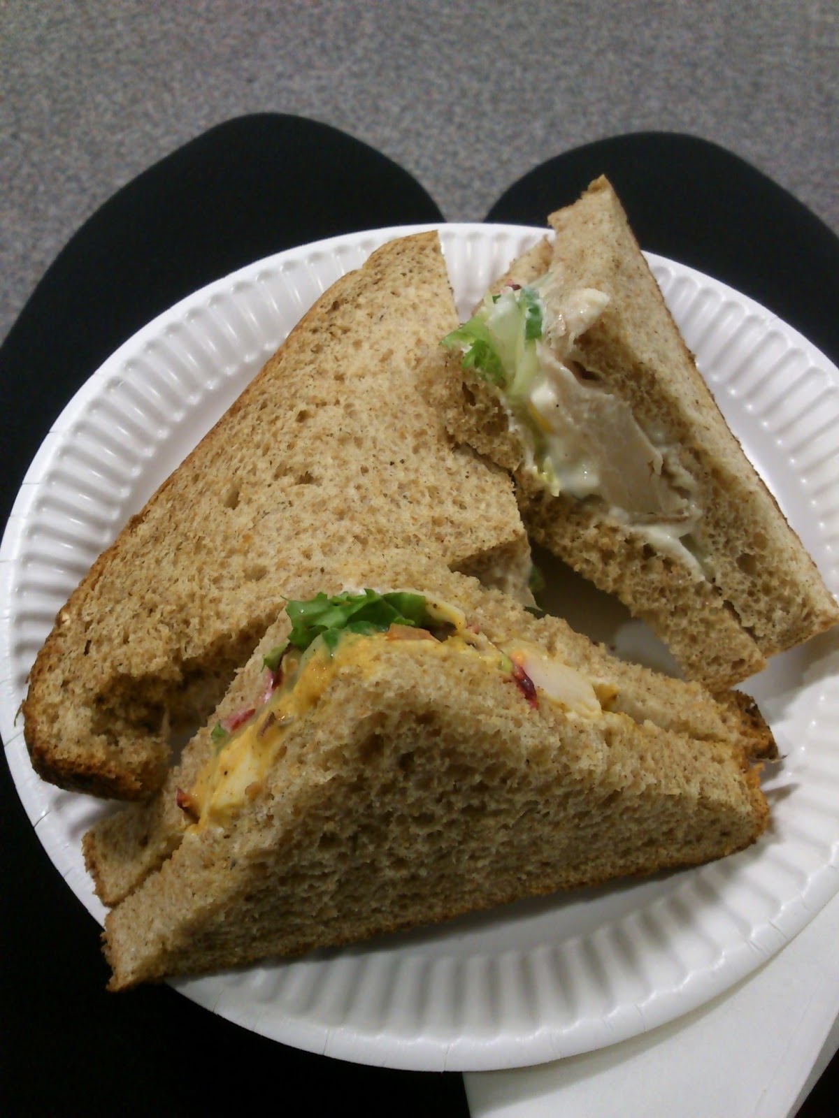 I don’t eat crisps so helped myself to some sandwiches, and grabbed a banana from the office fruit box.