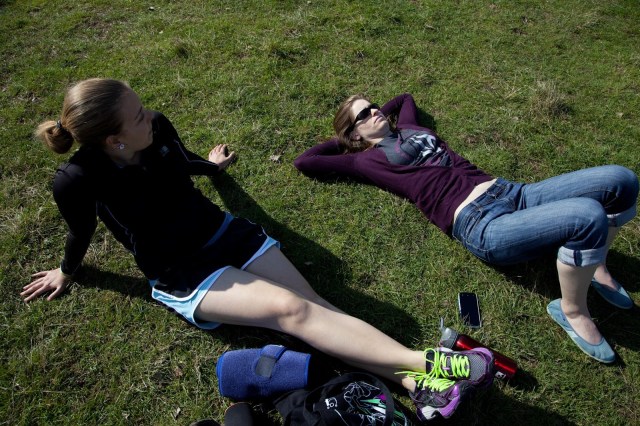 On Monday my friend Rachel and Mark came along to support. I was also able to catch Leah and Laura before the race and say good luck! It was a hot sunny day, beautiful weather but a bit different to what I’d trained in over the winter. It was really nice to chill out on the grass with everyone before hand and soak up the atmosphere.