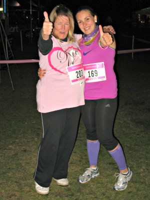 | Me and Mark’s mum, Pat completing the Norwich Race for Life last year! |