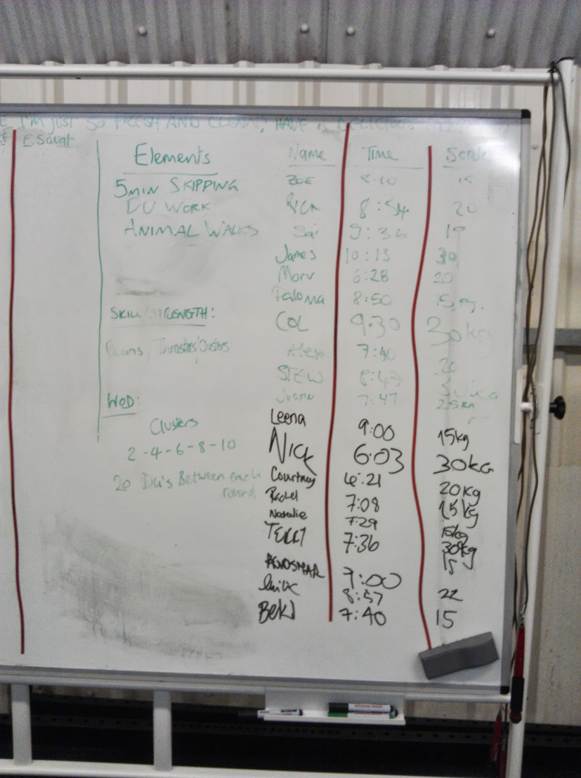Tuesday’s Crossfit session focused on the Cluster – a clean and a thruster… cluster!