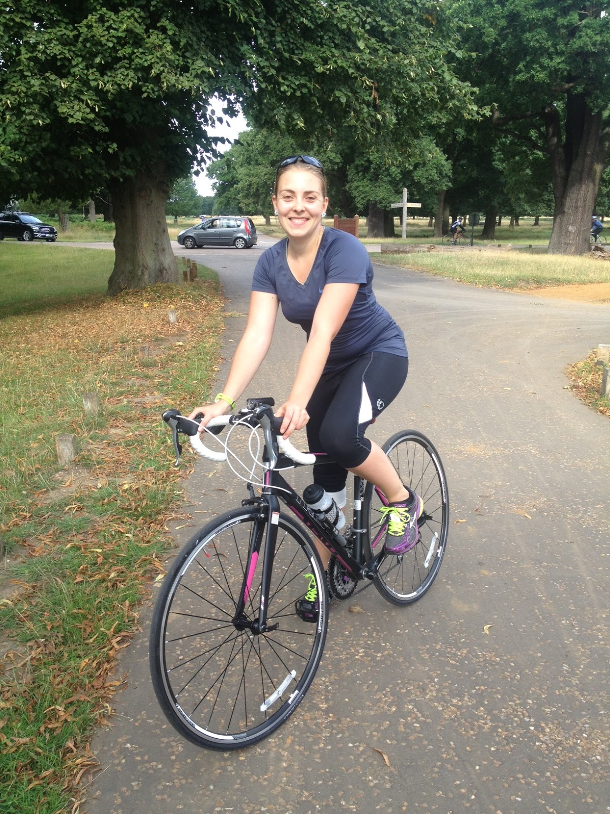 I loved the cycling! It was a bit windy and there was one nasty hill up to the Ballet School on the 5k loop, but it was such gorgeous scenery in Richmond Park. The weather was sunny and so early on a Sunday morning it was pretty peaceful apart from the hordes of other cyclists! I was overtaken A LOT, and need to get over my fear of not braking on the downhills as I’m sure that would help my times! It also became apparent that clipless pedals would be much appreciated on the uphills, so I could stand up in the saddle for extra power.