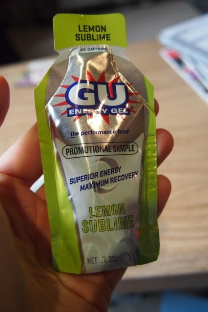 I tried the Lemon Sublime flavour gel on Sunday which was nice. The gels are quite sticky, and are best consumed with a drink. They are a handy sachet size, and very convenient to carry. I just need to practise the “opening-on-the-go-without-getting-it-everywhere” technique…
