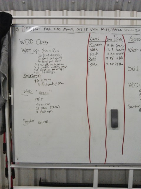I managed the Rx weight for the KBS, but man, I can’t do pull ups!