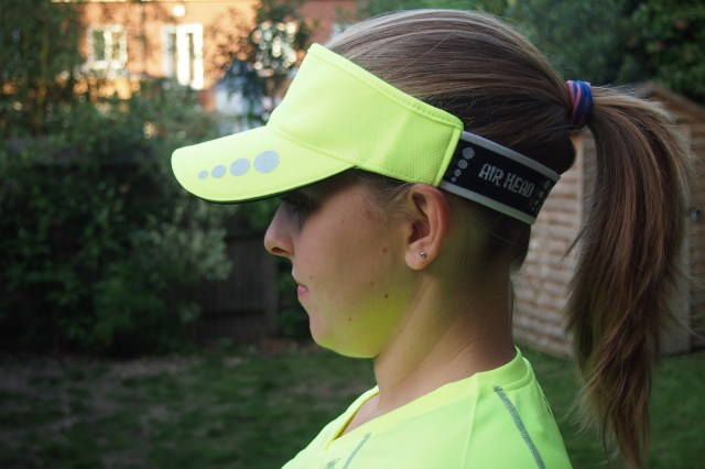 While I don’t appreciate having the label “Air Head” (haha), I do love this visor! Again it’s quite bright, and would be great for reflectivity and visibility at night, but then again do you need a hat to keep the sun out of your eyes at night?! It is very comfortable though, and being a visor rather than a cap doesn’t make your head too hot when exercising.