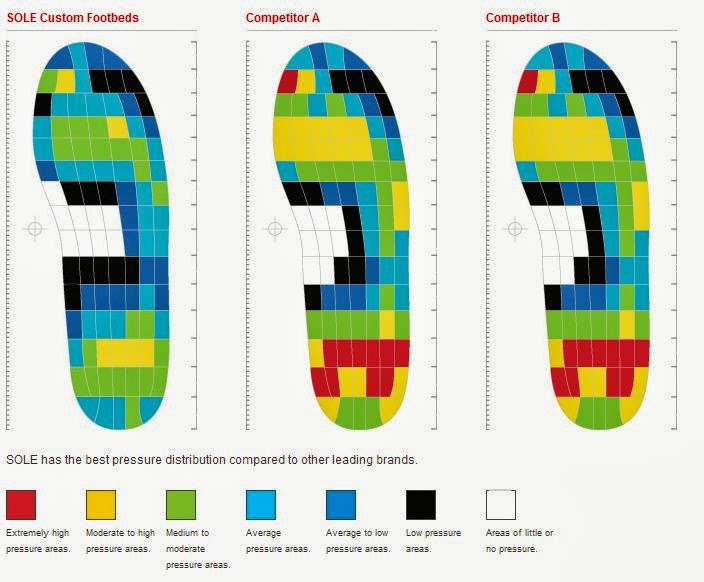 The above image also shows how much extra cushioning the SOLE insoles offer under the heel, which is great for impact sports like running, as well as giving a more even spread of pressure improving proprioception and balance.