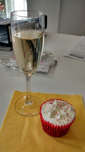 | Celebratory champagne and cupcakes given to me when I collected the keys! |