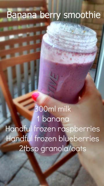 I’ve tried a couple of my own experimental recipes so far, but the Breville Blend-Active actually comes with a handy list of recipes in the Instruction Manual as well as there being more ideas on their website, Creative Kitchen. I love the sound of the Protein Rich Shake- peanut butter, banana, oats- it’s like my porridge in a smoothie!