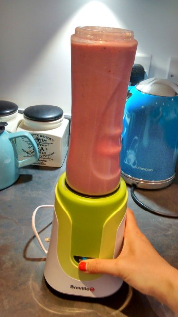 It’s so simple to use as well- I hate faffing around with lots of bits and pieces, but with this blender you just put your ingredients into the bottle, attach the blade cap, turn it upside down and put onto the blender base unit. And then blend! (Note: you have to hold the button down for as long as you want it to blend, rather than press on-and-off)