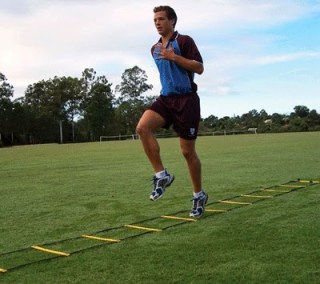 Ladder runs– Both feet in each square. You could use tiles/paving slabs or just sub for high-knee runs.