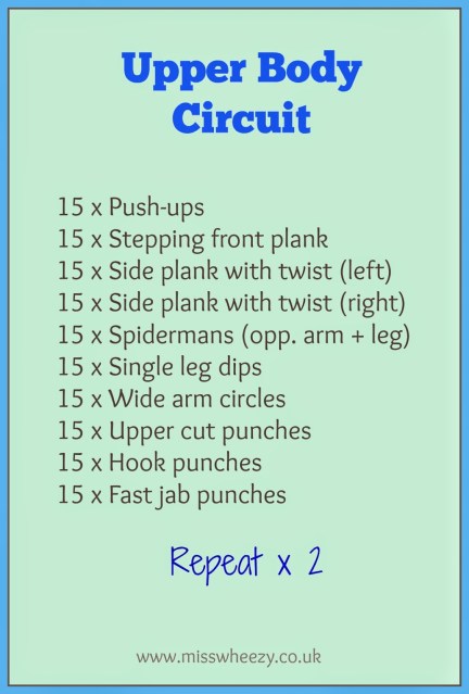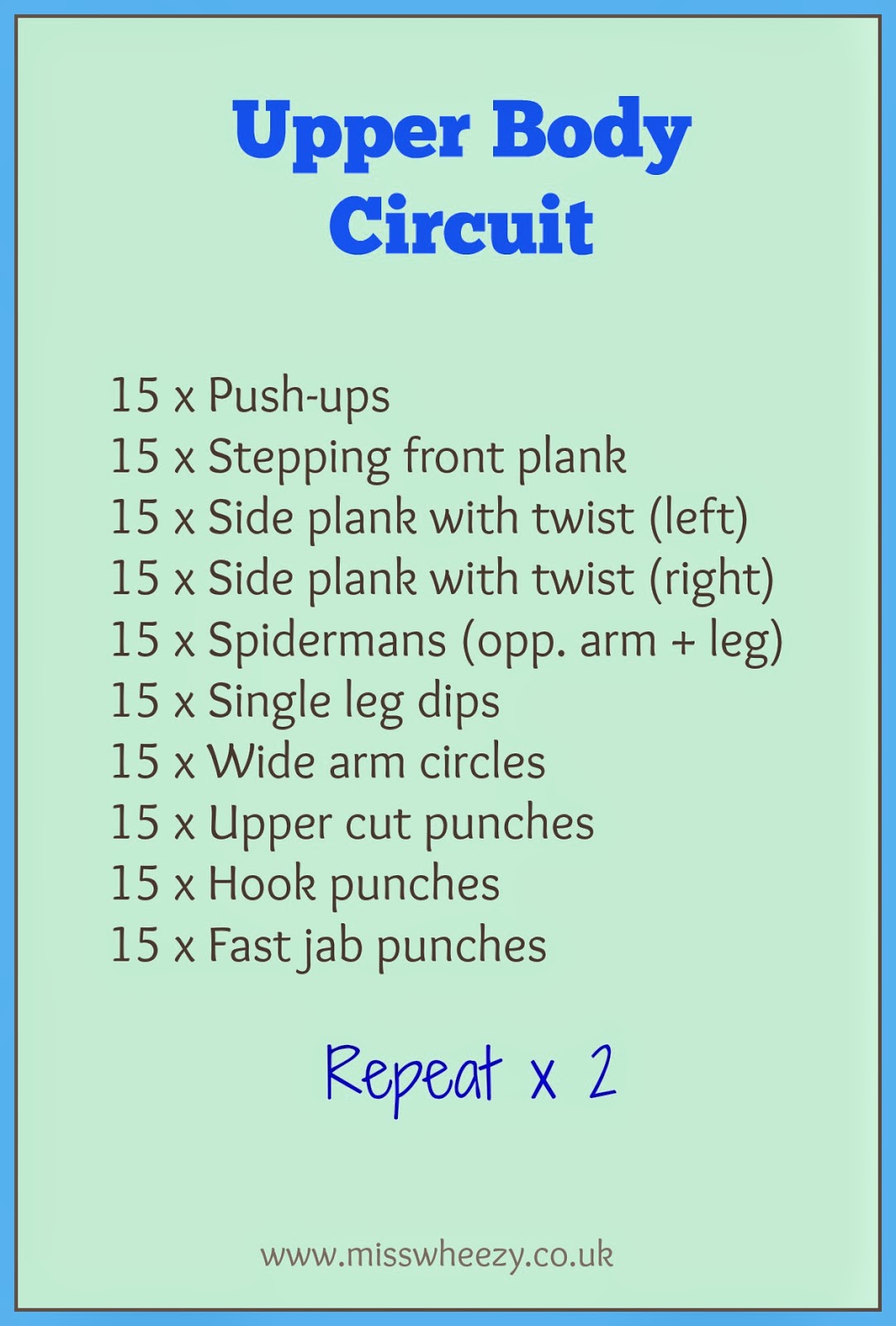 This Upper Body Circuit doesn’t require any equipment or even a timer, as you just count reps for each move, so can be done anywhere. On the second (or third!) round you really start to feel the burn so it’s worth repeating!