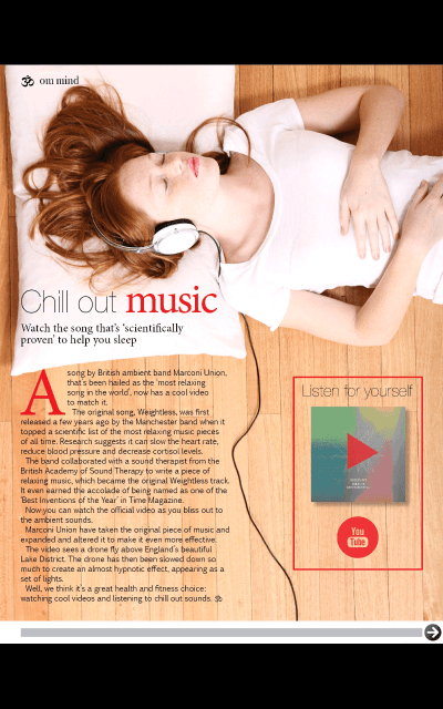 The music can slow the heart rate, reduce blood pressure and decrease cortisol levels. The band collaborated with a sound therapist to write the piece, intending it to be relaxing.