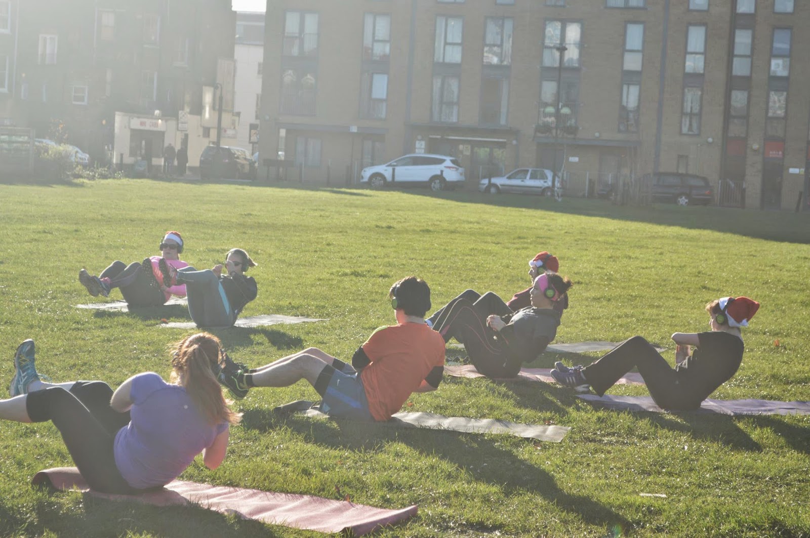 The Zero Calorie Advent Calendar team kindly organised a Christmas themed session in Vauxhall Gardens, which involved santa hats and reindeer antlers, as well as lots of squats, press-ups, and sprints!