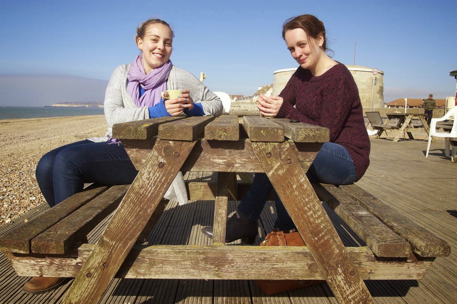 We strolled along the promenade by the shingle beach and enjoyed hot chocolates at the beach cafe in the sunshine.