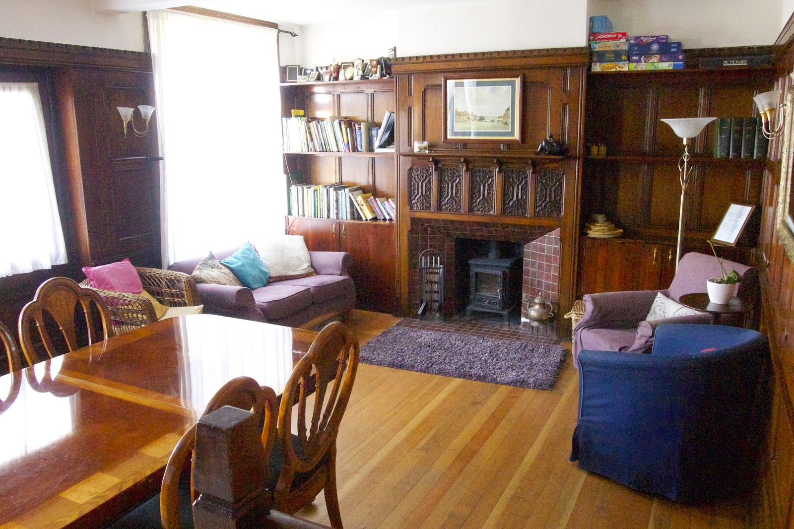 Downstairs the yoga practise room was long and light, with patio doors looking out onto the garden, and there was a lounge area with wood-burning fireplace and plenty of yoga magazines to read!